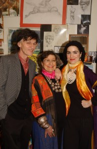 My brother-in-law, Bill, my mom, and I. We’re standing in front of a bunch of my drawings and watercolors from my artschool days, as well as a photo from my short-lived career as a hand model…