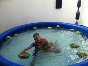 I’ve talked before about how helpful it is for galleries to offer food and refreshments at openings, that a lot of art seems more beautiful, profound, socially conscious, and politically relevant to the well-fed and slightly tipsy. I lamented the shocking lack of cheese cubes as well as the austere Kruschev-era-style Perrier-rationing at 49 Geary, an unfortunate state of things on its own, but especially piteous in light of something I heard at the most recent first Thursday. A couple of stalwart art lovers who’d attended the monthly art walk since 2001 said that in former days of plenty, not only did the galleries there serve more generous amounts of water, champagne, and wine — and in glasses made of glass rather than plastic – but in what now seems like an ecstasy of largesse, offered entire wheels of cheese. I was ready to despair that America’s best days really were behind it, and that that behind, happily fattened on bries as fragrant as the feet of French angels, had waddled away forever. (continue reading)