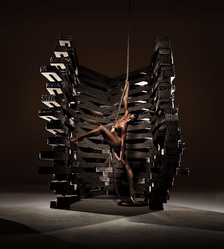 For the score, Hart gathered light waves from the heavenly bodies and converted them into layers of sound. No idea what to expect, but I’m sure Pythagoras would have gotten in on that had he the equipment. San Franciscans are already familiar with architect Haas’s work–he was one of the architects of our new De Young Museum, the mere sight of which can make one worry if one’s tetanus shots are up to date. For Triangle, Haas spared us this anxiety; he created an interactive set made of recycled cardboard and elastic chords.